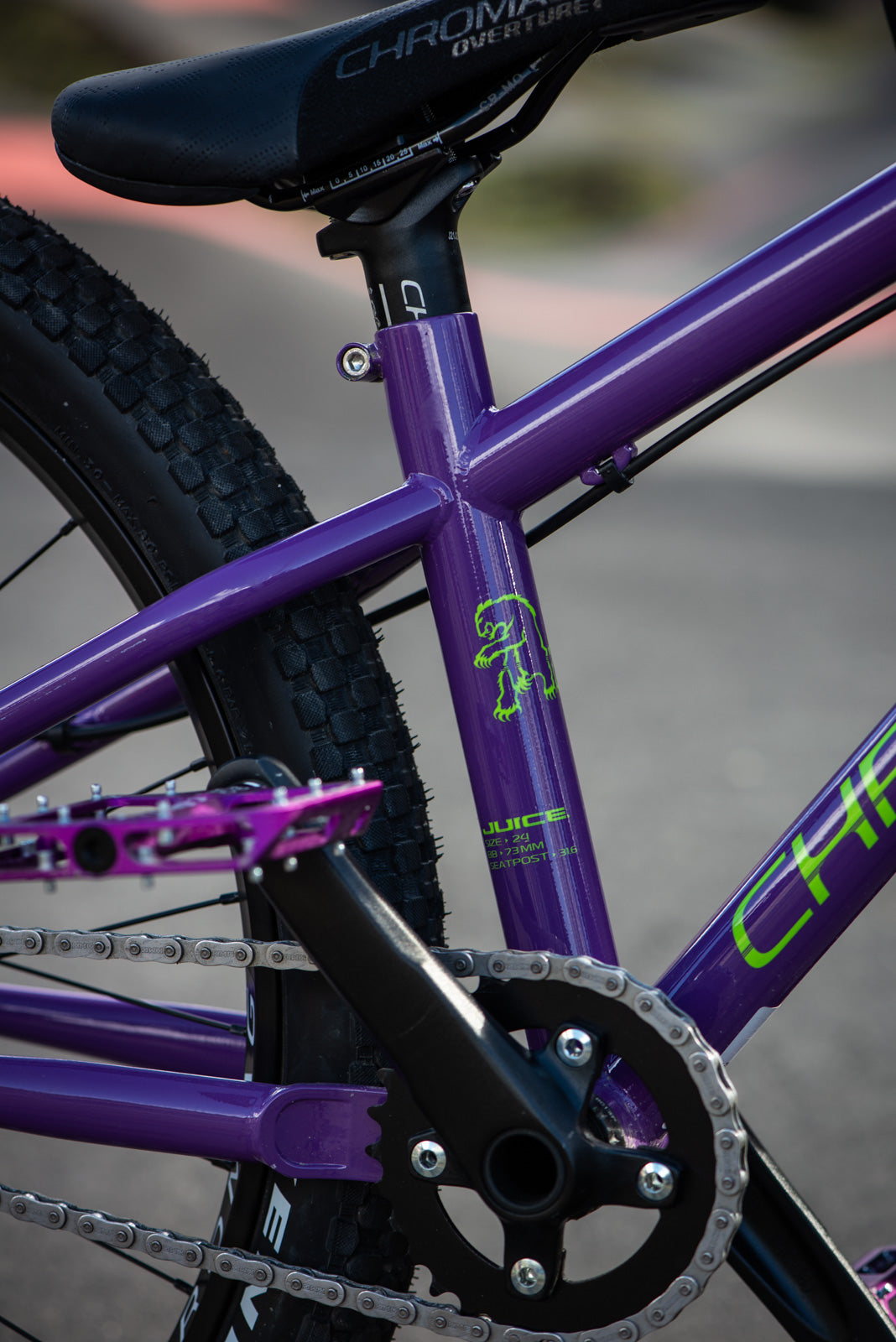 We set about designing The Juice as we had more and more people asking for a high-quality, durable dirt jumper for kids, in 20” and 24” wheel sizes. We wanted to design a range especially for smaller rippers who ride at a high level and need a bike that is up to the task.