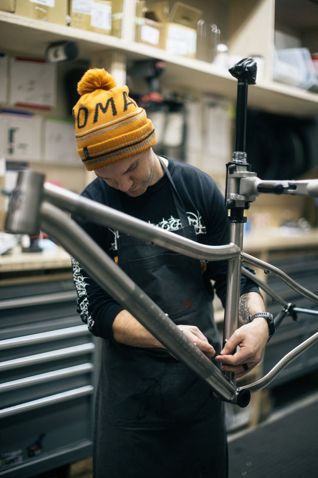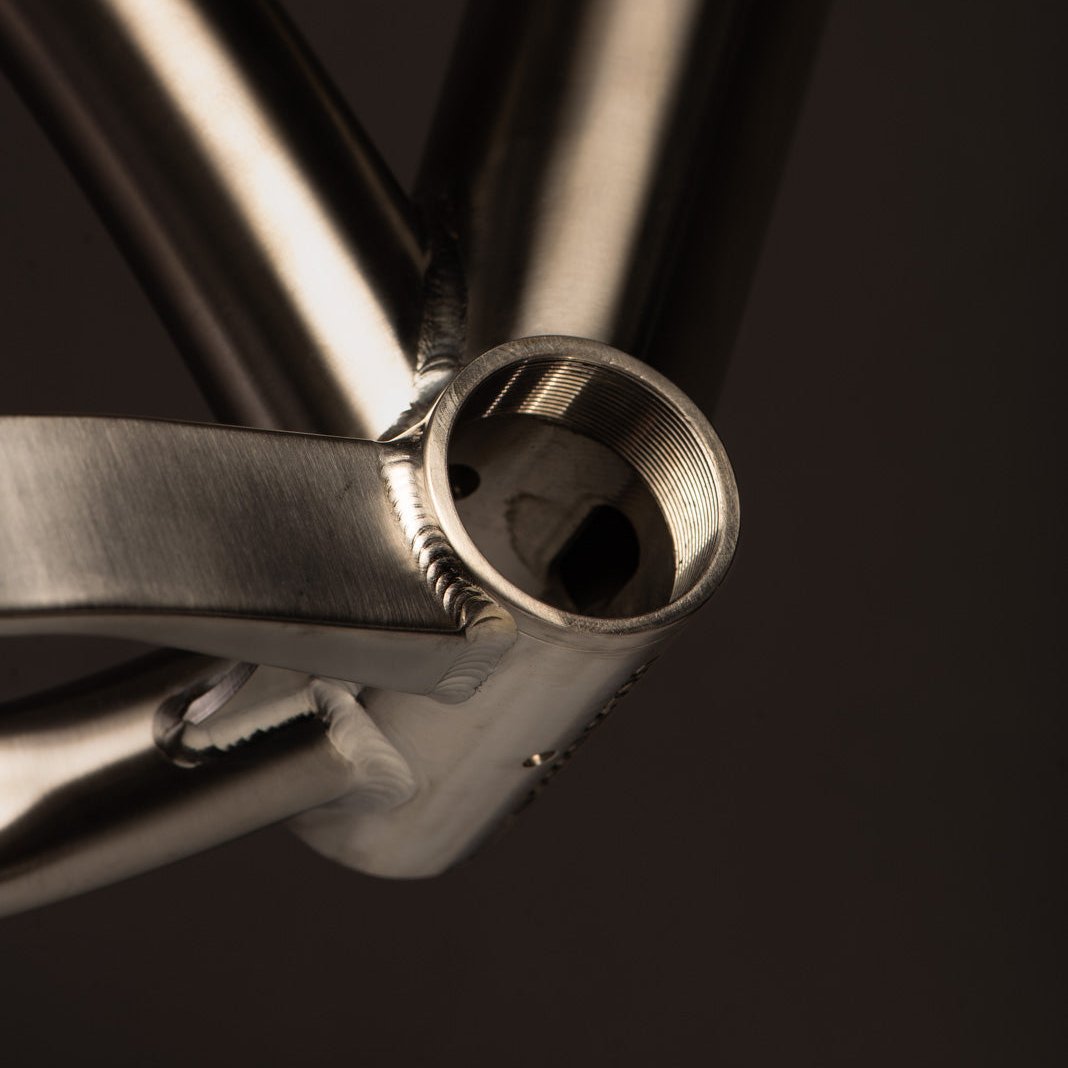 Titanium is most known for it's corrosion resistance and strength to density ratio, the highest of any metallic element. It's half the weight of steel for the same tensile strength and twice as strong as aluminum alloy. In practical terms this means we can use less material (ie. thinner tubing) to achieve the same strength. Combining this with it's ductility means we can create incredibly light frames, but still maintain incredible compliance and ride feel.