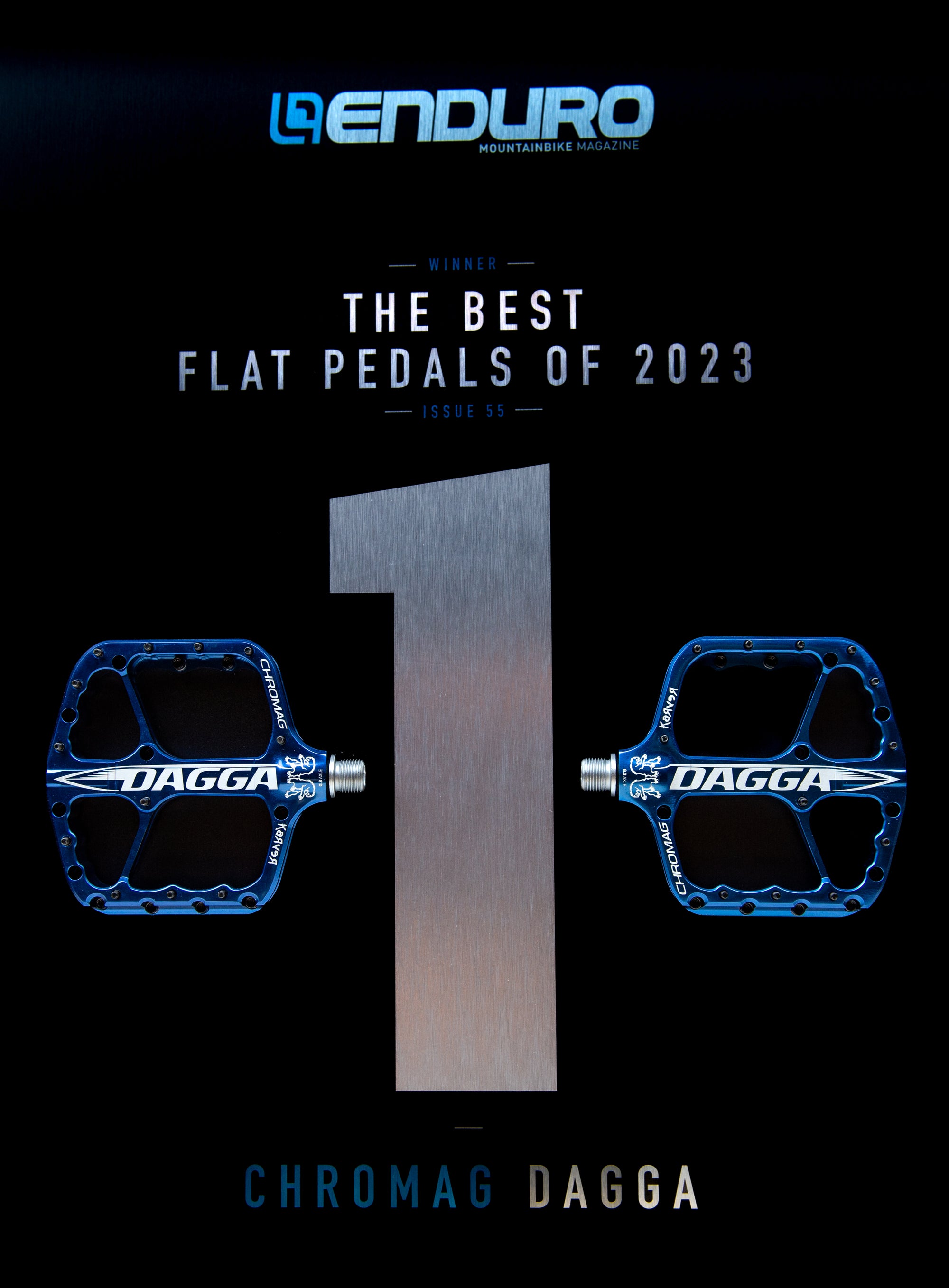 The Daggas are my favorite platform pedal. Its the wide stance/Q-factor that really makes them stand out, having that extra room creates a more stable feeling for me. I run the front pins at full height, the rear pins with the stock washer installed, and I use Scarab pins on the outside to enhance the concave effect. Running them with 5.10 Impact Pro shoes. I was a clip-in guy for 20 years, but this combo has me switching to flats on my DH and enduro bikes. Big fan!
